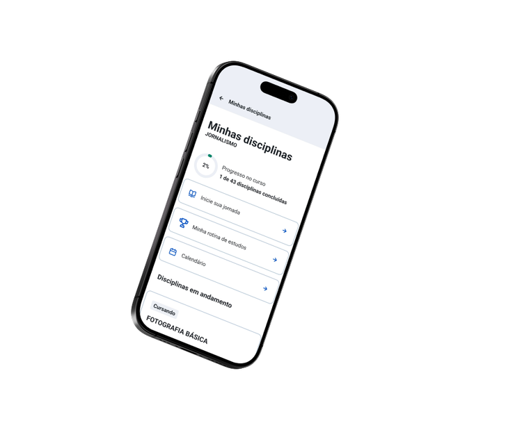 O novo PDA coloca o poder da escolha nas suas mãos. Onde quer que você esteja, o aprendizado te acompanha, com uma navegação mais fluida e acesso rápido às disciplinas. Um novo jeito de aprender.
